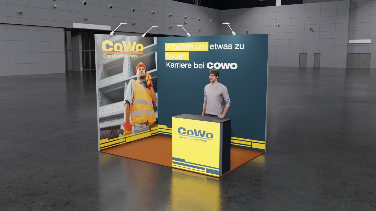 Unsere Messestände basieren auf einem anpassungsfähigen modularen System. Mit unseren detaillierten Datenblättern hast du die Möglichkeit, deine eigenen Grafiken zu entwerfen oder du kannst dich auf die Professionalität unseres erfahrenen Messeteams verlassen. In jedem Fall führen wir eine gründliche Überprüfung deiner Grafiken durch und bieten dir eine 3D-Visualisierung deines Messestands vor der Produktion.