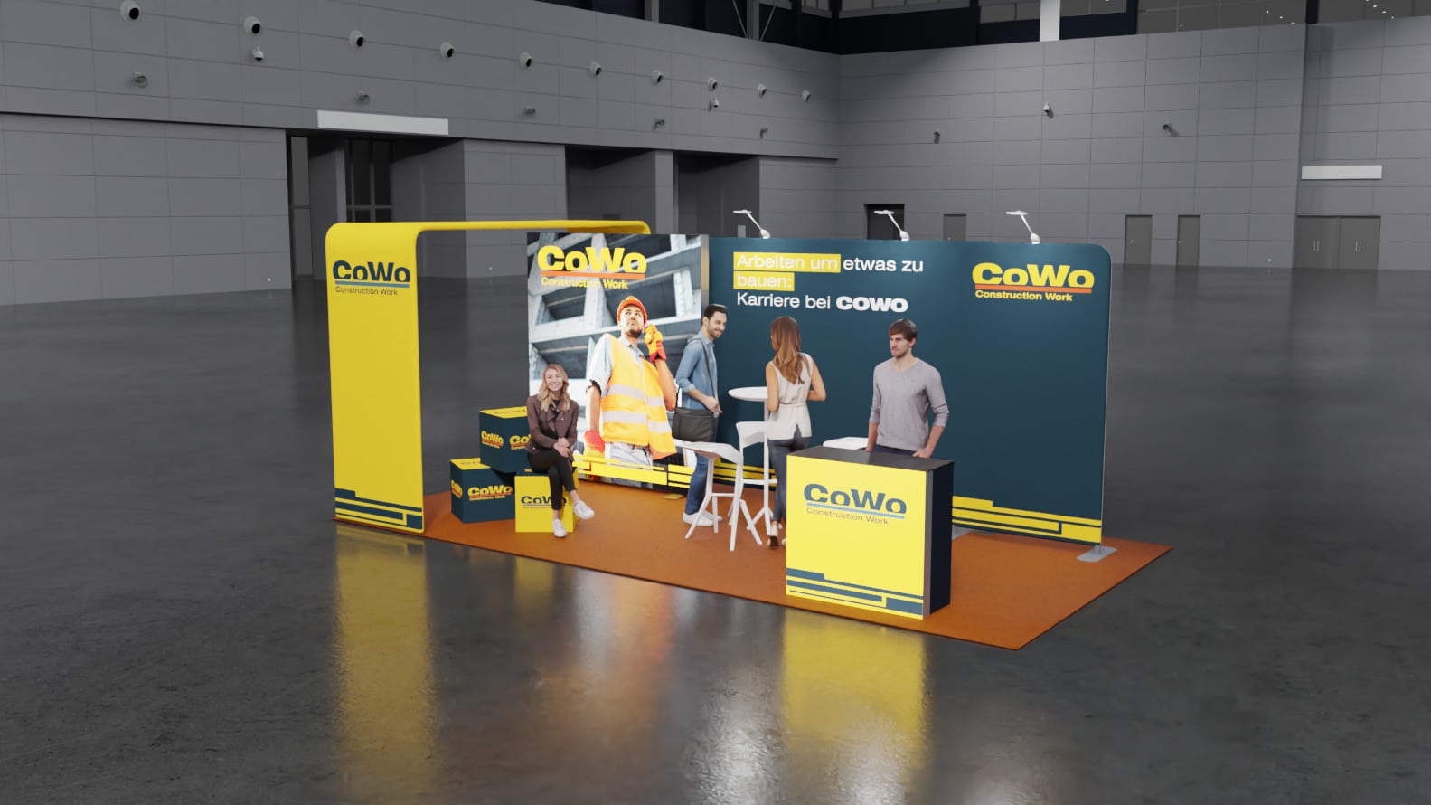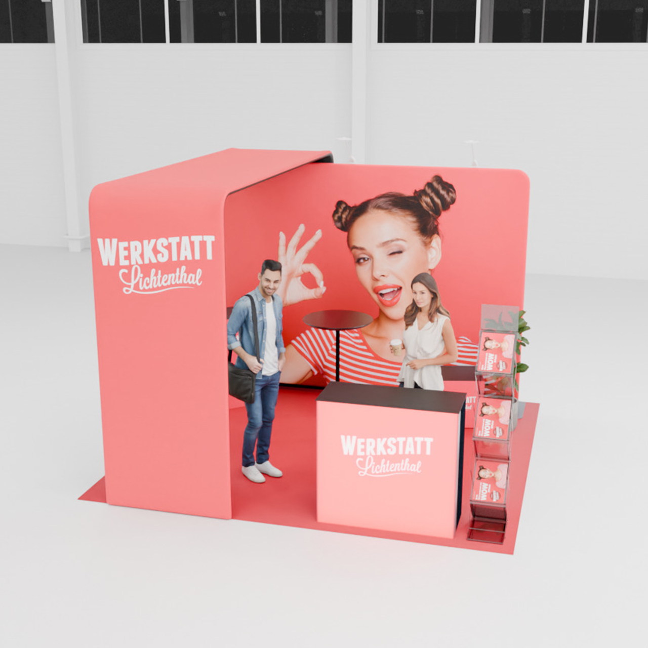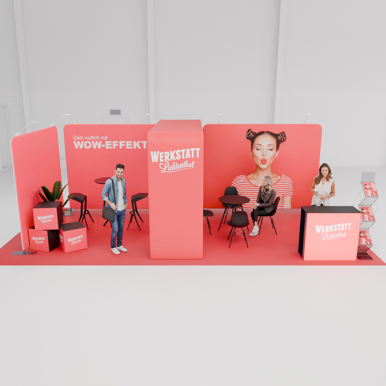 Nutze die gestaltbaren Grafikflächen, um deine Marke und Produkte ins beste Licht zu rücken. Wir helfen dir dabei, deine Designs zu prüfen und visualisieren deinen Stand in 3D, damit du genau siehst, wie alles zusammenkommt. Verlasse dich auf die Professionalität unseres erfahrenen Messeteams, das dich gerne von der Planung bis zur endgültigen Umsetzung unterstützt.