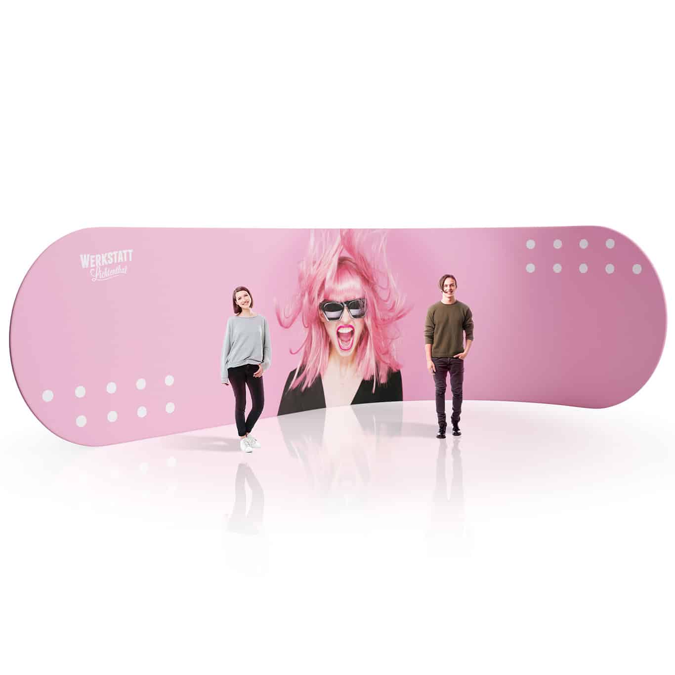 Beeindruckend, großflächig und wirkungsvoll – die Pressewand CRAFT ist unsere größte, leicht organisch gebogene Pressewand und setzt Markenbotschaften in einer neuen Dimension auf Messen, Bühnen oder große Eventflächen in Szene.