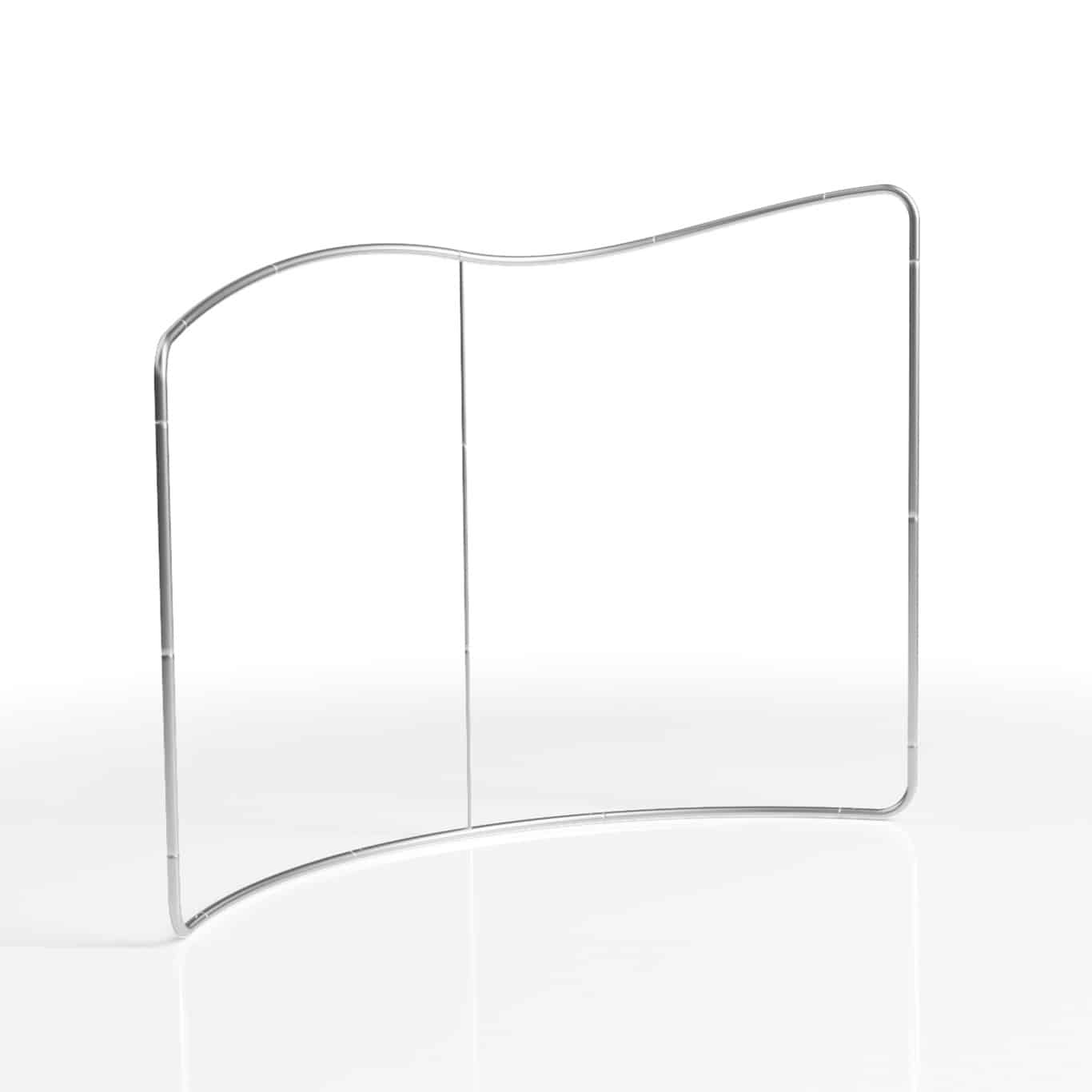 Modern, dynamisch und außergewöhnlich – die Pressewand SLOPE überzeugt mit ihrer markanten, organischen Form und eignet sich perfekt als kreativer Raumteiler, für Messestände oder zur Aufwertung von Empfangsbereichen.