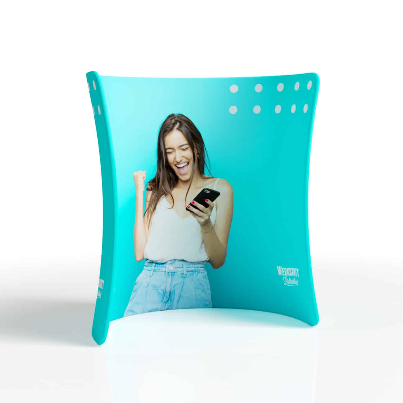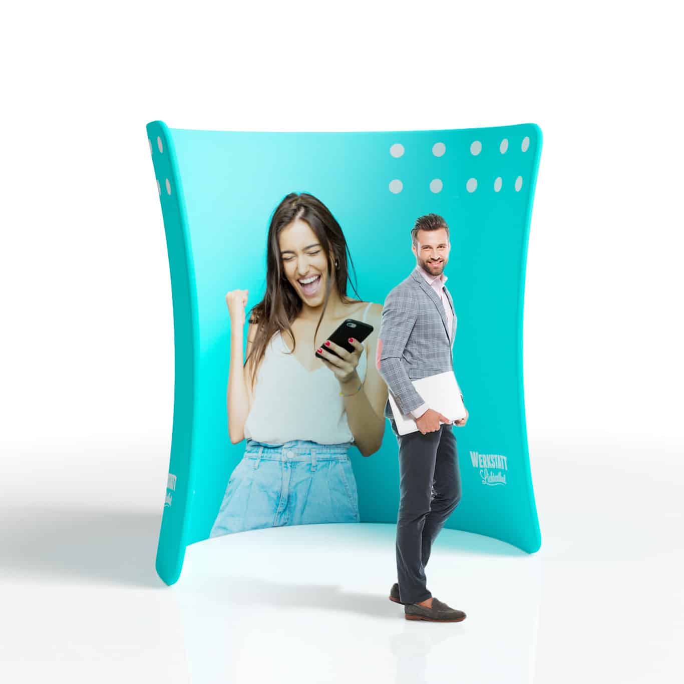 Wie bei all unseren Pressewänden kannst du auch bei der Pressewand C auf hochwertige Textildrucke setzen. Der Sublimationsdruck auf Polyester sorgt für brillante Farben, eine faltenfreie Oberfläche und eine langlebige Nutzung. Dank beidseitigem Druck wird deine Botschaft aus allen Perspektiven optimal sichtbar. Die Textilgrafik ist zudem abnehmbar, waschbar und jederzeit austauschbar – ideal für wechselnde Kampagnen und nachhaltige Einsätze.