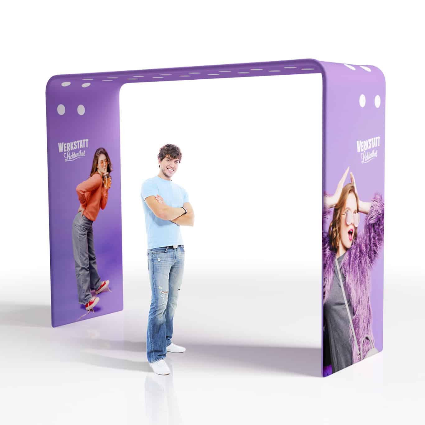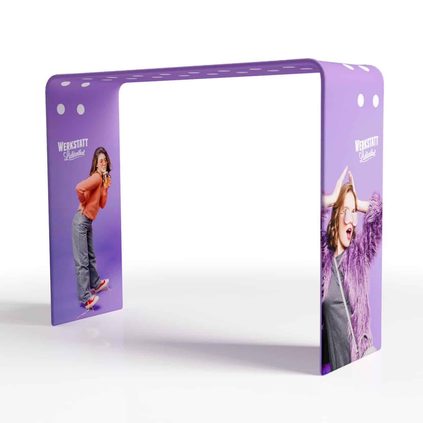 Einladend, modern und außergewöhnlich – der Werbebogen BOW schafft mit seiner markanten Form ein offenes Portal und bietet eine großzügige Präsentationsfläche, die deine Botschaften, Kampagnen oder Logos aus jeder Perspektive wirkungsvoll zur Geltung bringt.